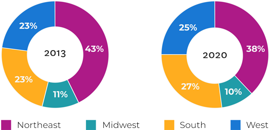 Although American Jews are remarkably different from one another, they are still united by core beliefs, attitudes, practices, habits of thinking, and ways of engaging with the organized Jewish community. As in 2013, the 2020 report showed that Jews, in general, are older, have higher levels of education and income, and are disproportionately concentrated in the Northeast compared to all other Americans. Jews are also slowly but gradually becoming more racially and ethnically diverse; while 92% of American Jews identify as non-Hispanic whites, only 85% of American Jews aged 18 to 29 do so.